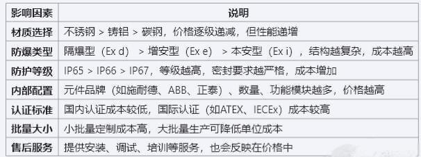 二、影响防爆配电箱价格的主要因素